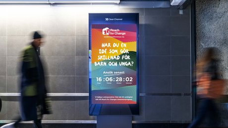 Our Incubator program in Sweden is open for applications. Social entrepreneurs with ideas that make a difference for children and young people can apply until September 30th. The national outdoor campaign is shown on Clear Channel's digital screens across the country.